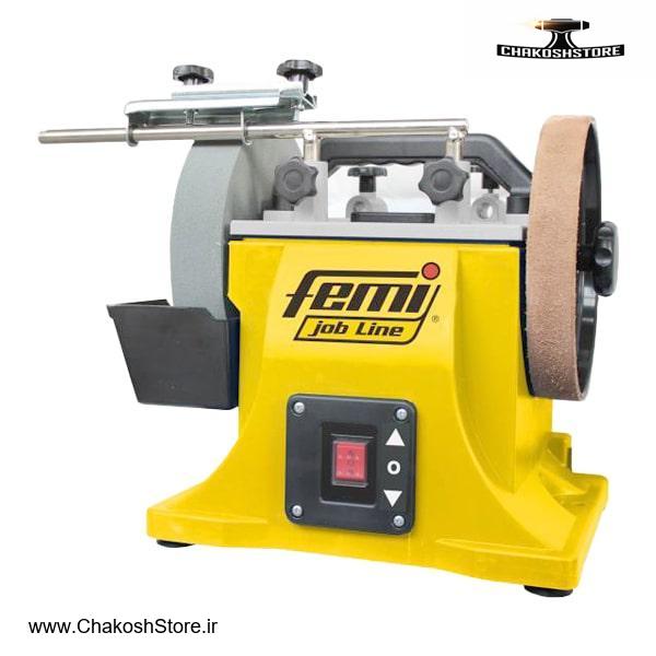 سنگ رومیزی و مغار تیز کن 2 کاره از برند ایتالیایی Femi چرخ سنباده دارای سنگ-آب الماسه / پد چرمی / گیره نگهدارنده مخصوص تیز کردن حرفه ای ابزار عمومی، نجاری، چاقو، قیچی، مغار و... انجام تمام مراحل تیزکاری، تنظیم نوک و پولیش نهایی ابزار موتور قوی 150 وات و سایز قطر سنگ و پد چرم 200 میلی متری تکیه گاه فلزی یونیورسال برای نگهداری نوک مغار در زاویه صحیح سرعت چرخش موتور 1400 دور و چرخش صفحه 95 دور در دقیقه فناوری چرخش برعکس بدون نیاز به جابجایی ابزار حین تیزکاری دارای مخزن آب و مایع جهت خیس نگهداشتن دائم سطح کار به همراه شابلون / 4 عدد پایه لاستیکی / دسته حمل آسان تحت لیسانس ایتالیا با ضمانت اصالت و کیفیت کالا