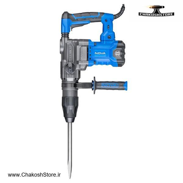 دستگاه بتن کن دو کاره دیمردار صنعتی ساخت برند NOVA مکانیزم عملکرد چکشی / چکشی-چرخشی و توان 1600 وات سیستم Vario Lock با امکان خلاصی و تنظیم قلم در 12 موقعیت ایده آل برای تخریب کلی، سوراخکاری یا لایه برداری کنترل شده دارای چراغ LED نشانگر وضعیت کار و سیستم ضد لرزش AVS مجهز به دیمر الکترونیکی جداگانه جهت تنظیم سرعت دلخواه قلم گیر 5 شیار SDS Max با ظرفیت سوراخکاری تا 42 میلی متر قدرت ضربه 10 ژول و گیربکس و گلویی آلومینیوم دایکاست عدم ورود گرد و خاک و سنگریزه به قسمت موتور و بلبرینگ ها به همراه قلم نوک تیز سایز 18x320 و مته 22x320 میلی متر ساخت چین با تضمین کیفیت و گارانتی یکساله رسمی
