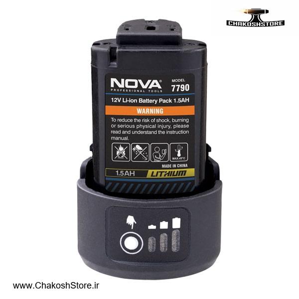 محصولات جدید و با کیفیت ساخت عالی از NOVA باتری لیتیوم یونی 12 ولت با امکان Fast Charge 1.5 آمپر ساعت و سازگار با ابزار شارژی 12 ولت نووا بدنه کم حجم و سبک با قابلیت کنترل دمای باتری دارای نشانگر LED برای اطلاع رسانی از شارژ باقی مانده مجهز به 3 سلول لیتیومی مقاوم در برابر شارژ اضافی به همراه عایق ضربه گیر و ضد نفوذ رطوبت هوا با عمر مفید طولانی تر نسبت به باتری های مشابه زمان لازم برای شارژ کامل با شارژر 1.5 آمپر، 60 دقیقه ساخت چین با تضمین اصالت، کیفیت و سلامت کالا