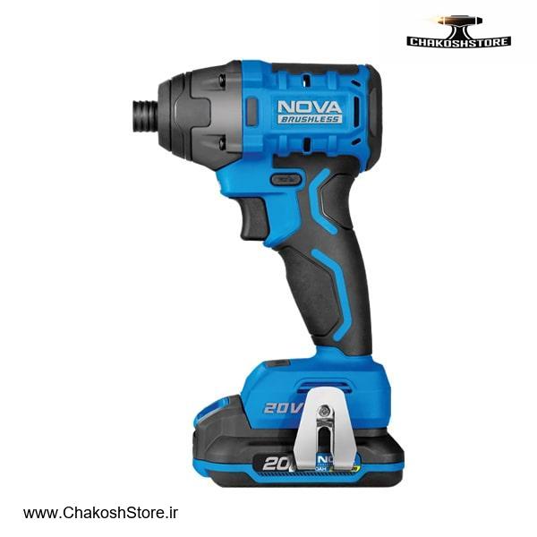 جدیدترین ابزارآلات کاراگاهی و صنعتی از برند نام آشنا NOVA پیچ گوشتی شارژی 20 ولت با 3 حالت تنظیم سرعت و ضربه پیچ بندی و سوراخکاری در متریال های چوبی، فلزی، پلاستیکی و... موتور براشلس با دوام و کارایی چندین برابر نسبت به نوع ذغالی شامل گیربکس فلزی مناسب مصارف صنعتی سنگین و طولانی دارای درایو شش گوش 1/4 اینچی با قابلیت چپگرد و راستگرد دو باتری لیتیومی 2 آمپر ساعت فست شارژ با نشانگر ظرفیت حداکثر گشتاور 200 نیوتن متر با نرخ 0 تا 3100 ضربه بر دقیقه ایمنی کاربر با فناوری توقف خودکار / کار در تاریکی با چراغ LED با گارانتی دو ساله شرکتی و خدمات پس از فروش طولانی مدت