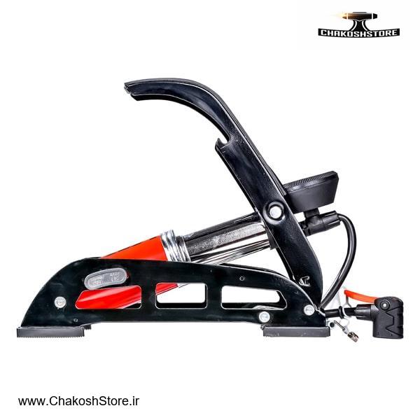 ابزارهای دستی مصارف خانگی و عمومی ساخت شرکت Arva تلمبه پایی تک سیلندر گیج دار با خروجی پر فشار 58 PSI (4 بار) مناسب باد زدن سریع انواع لاستیک، تایر، تشک، توپ، قایق و... دارای فریم مستحکم و سیلندر بزرگ از جنس استیل درجه یک پدال روکش دار ضد لغزش با مهار کامل و بدون لرزش حین کار مجهز به فشار سنج عقربه ای با نمایش دو واحد Bar و PSI شلنگ فشار قوی با تحمل فشار بالا و برقراری اتصال محکم تجهیز شده به ضامن قفل کن و سوزن جهت مصارف مختلف تضمین اصالت و کیفیت و ضمانت سلامت فیزیکی کالا