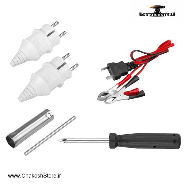 | اقلام همراه | دو شاخه - کابل اتصال DC - آچار شمع - پایه لاستیکی با مهره |
