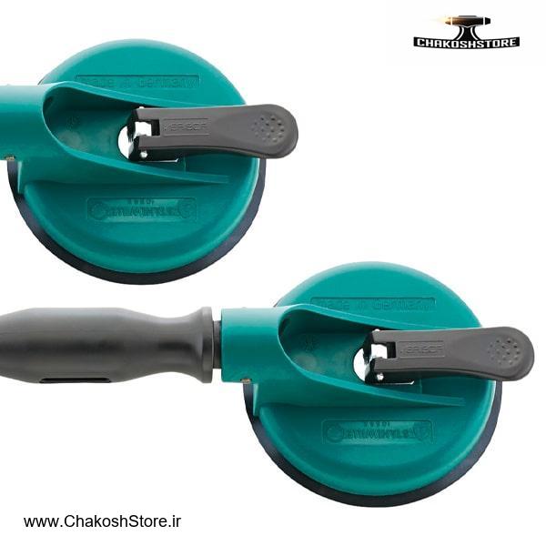 ست ابزارآلات دستی و فوق حرفه ای اشتایویل ساخت آلمان یک جفت قاپک دو قلو (دوبل) با پدهای قطر 12 سانتی متری تحمل وزن بالا تا 60 کیلوگرم (هر قاپک برابر 30 کیلوگرم) فوق العاده برای حمل سایز بزرگ شیشه، سنگ، تخته و... مجهز به اهرم قفل کن ایمنی با مکانیزم مکس مکانیکال جنس بدنه از متریال پلاستیک ABS نشکن از بهترین مواد پد کارگیر ضد مواد شیمیایی، اسید و ضد لغزش روغن و... سبک وزن و ارگونومیک با دسته کمربندی روکش رابری ضمانت اصالت و سلامت کالا و ارسال فوری به تمام نقاط