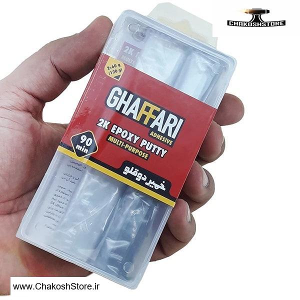 ارایه محصولات مرغوب از برند ایرانی Ghaffari خمیر دوقلو 90 دقیقه همراه با شکل پذیری بالا آببندی سوراخ های اگزوز، رادیاتور، لوله و منبع طراحی شده به روش دو جزیی بر پایه اپوکسی رنگپذیری مناسب در شیشه، پلاستیک و غیره تعمیر انواع اشیاء و پلمپ قطعه ماکت سازی بهره از قابلیت انعطاف پذیری و استحکام بالا مقاومت مکانیکی و حرارتی زیاد در هر شرایط خشکی و تثبیت شدن تنها در 1/30 ساعت تضمین اصالت با ضمانت کیفیت و سلامت