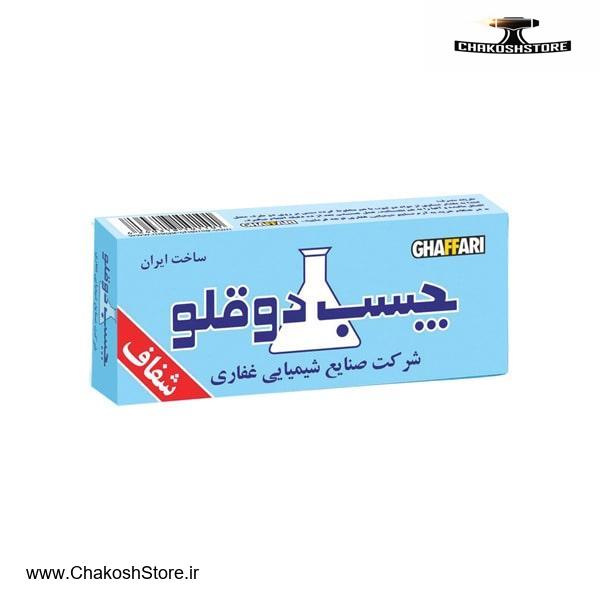 محصولات درجه یک از برند Ghaffari ساخت ایران چسب دوقلو (شفاف) همراه با قدرت چسبندگی زیاد چسباندن سطوح فلزی، پلاستیکی، سرامیکی، چوبی و... بدون هرگونه جمع شدگی و حلالیت در هر شرایط کاری ویژه چسب کاری دقیق و تمیز شیشه و اجسام شفاف دو جزیی بر پایه اپوکسی با مدت زمان خشک شدن کم استحکام شیمیایی بالا و تولید به شکل خمیری بی رنگ تضمین اصالت با ضمانت کیفیت و سلامت فیزیکی کالا