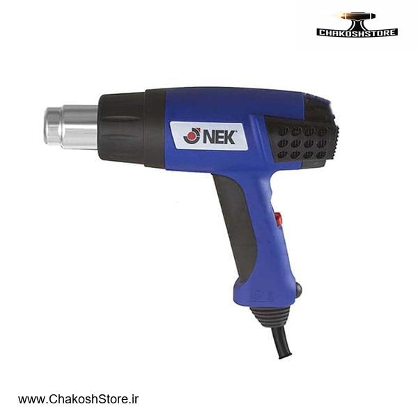سشوار صنعتی NEK ساخت کشور چین موتور پر قدرت 2000 وات مجهز به نشان دهنده دیجیتال با حداکثر خروجی حرارت 630 درجه سانتی گراد هوا دهی مناسب 550 لیتر در دقیقه به همراه 4 عدد نازل مختلف خدمات پس از فروش و تعمیرات مادام العمر 6 ماه گارانتی