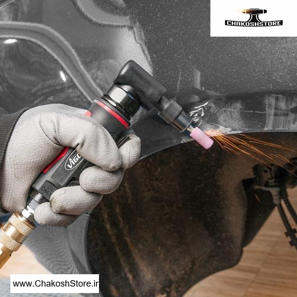 محصولی از کمپانی Vigor با کیفیت بالا تحت لیسانس آلمان فرز انگشتی چپقی (سر کج) با زاویه سر ابزارگیر 90 درجه بدنه کامپوزیت و کاملا خوش دست با روکش ضد تعریق مناسب اصلاح سطوح، پرداخت، پلیسه گیری در نقاط سخت مصرف باد بهینه و کم تا حداکثر 85.5 لیتر در دقیقه طول ابزار 206 میلی متر و قابل کار با کولت 3 و 6 میلی متر دارای ماشه حساس به فشار و ضامن و محافط قفل کن کوپلینگ ورودی 1/4 اینچ و قابل نصب روی تمام پمپ ها تضمین اصالت و سلامت کالا و ارسال فوری به کل کشور