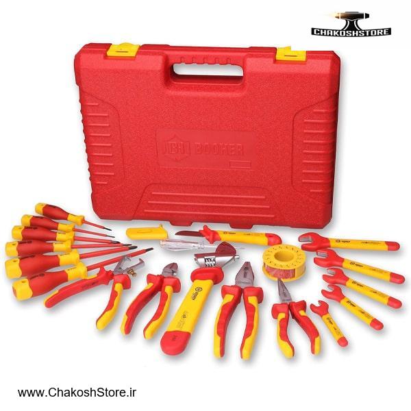 ساخته شده توسط برند BOOHER با کیفیت درجه یک و معتبر جهانی جعبه ابزار فشار قوی 19 عددی با لوازم متنوع و طراحی ایمن ضد حریق مناسب برای مشاغل برقکاری، تعمیرات صنعتی و کارهای مربوط به برق دارای ابزارهایی تست شده تا ولتاژ 10,000V جهت اطمینان از ایمنی کاربر جنس ابزارها از فولاد آلیاژی با سختی بالا و مقاومت در برابر ضربه و حرارت جنس آچار و پیچگوشتیهای این مجموعه از فولاد S2 حرارتدیده و با دوام ابزارهایی با مواد عایق کاملا ضد آتش و مقاوم در برابر دماهای بالا و پایین با گواهینامههای GS و VDE آلمان برای تضمین کیفیت و ایمنی محصول دارای جعبه از جنس پلاستیک نشکن و ابعاد 43x35x12 سانتیمتر تضمین کیفیت و ضمانت اصالت کالا + ارسال فوری به تمامی شهر ها